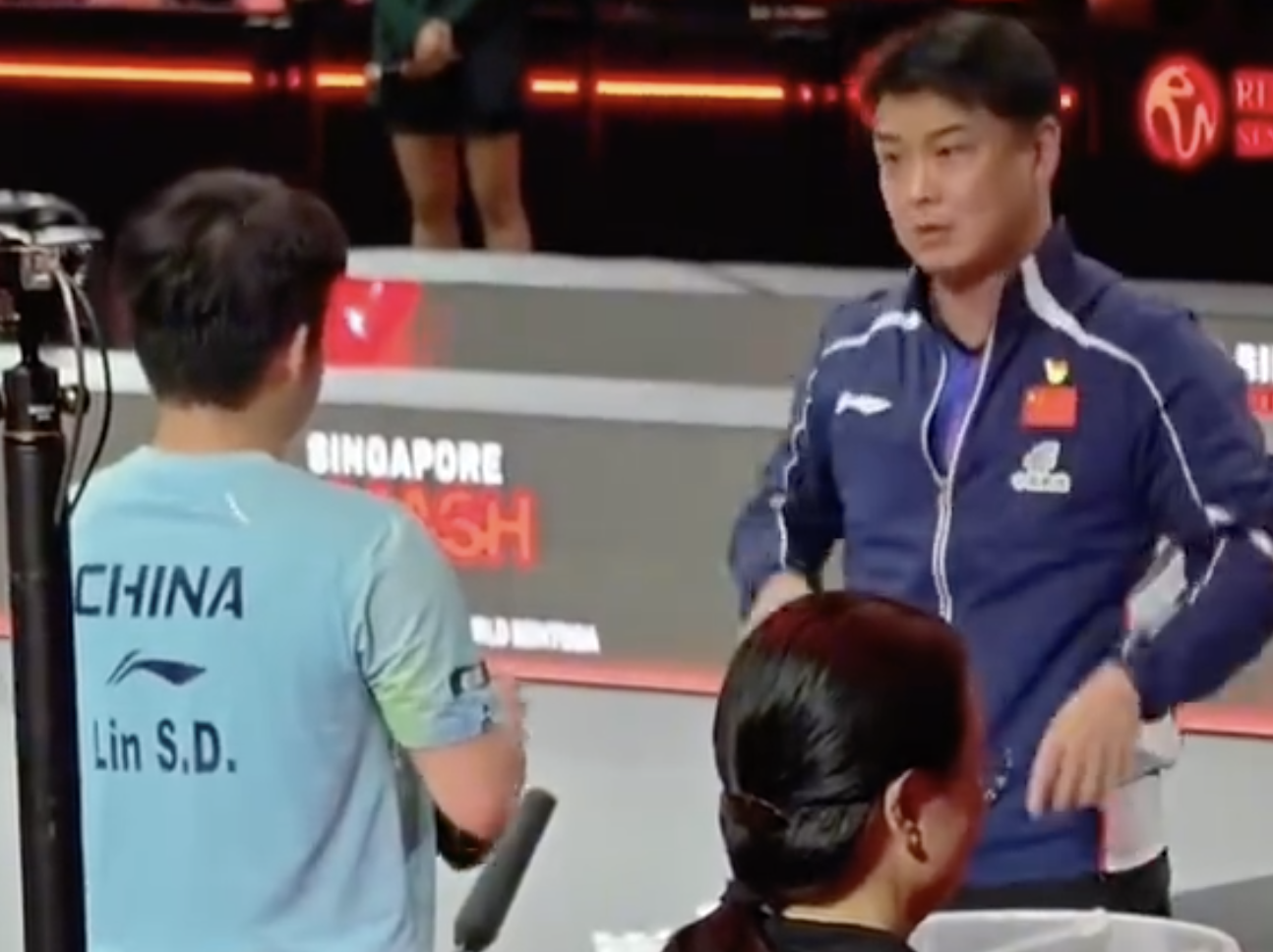 2月28日,林诗栋在新加坡的男单1/4决赛中2-4不敌小勒布伦,遭遇对后者的4连败。当时,教练王皓在场边很是生气。叫暂停的时候,王皓甚至爆粗,让林诗栋要对自己有信心、敢进攻。比赛结束后,王皓紧急在场边与林诗栋复盘,情绪很激动。